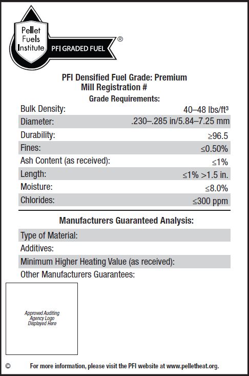 The awf white pine pellets say on the bag ultra premium for which there is no such official pfi rating although one has been considered but if there was such a rating which i wish there was i believe these pellets would indeed qualify.