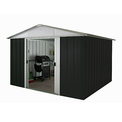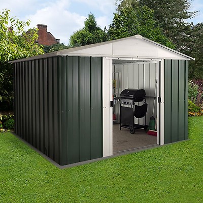 Metal shed accommodates lots of lawn and garden tools and equipment helping you safely store seasonal items when not in use.