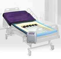 A hospital bed overlay is a device applied to a mattress bed top to improve circulation and help prevent pressure ulcers bed sores.