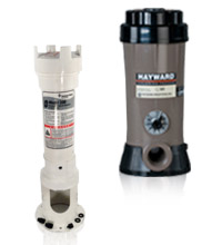 Hayward chlorinators are available for inground and above ground pools in both in line and off line versions.
